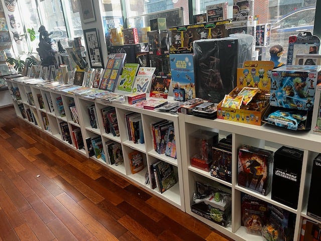 I was lamenting the lack of comic shops in NYC (the ancestral home of comic shops!), when I pulled up a map of the area surrounding my hotel in Long Island City. Intrigued by a Vietnamese sandwich shop a quarter mile away I sketched out my route. Lo and behold… Everyone Comics x Collectibles was right around the corner.